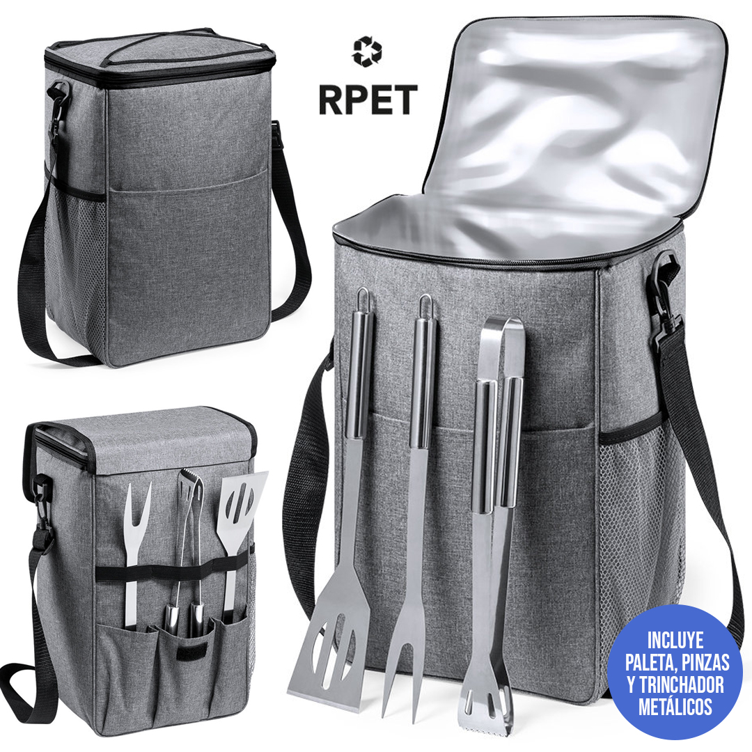 CARACTERÍSTICAS Composición: Poliéster 300D RPET/ PEVA Especificaciones artículo: cm / cm / cm | gr Packaging: alto (cm): 43 Packaging: largo (cm) : 60 Packaging: ancho (cm) : 37 Peso caja (Kgr): 9.5 Unidades/caja: 10