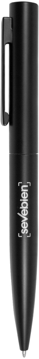 Metal. Cuerpo metálico negro mate. Clip del mismo color. Apertura giratoria. Tinta negra.