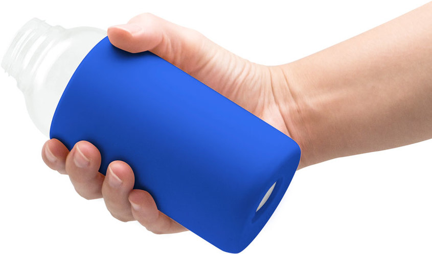 Ø 6,5 x 20 cm. Capacidad 350 ml. Vidrio de borosilicato. Botella práctica y reutilizable. Posee manga de silicona antideslizante en varios colores y pico ancho. Tapa a rosca, antiderrame y con manija de agarre. Presentación en caja de regalo.
