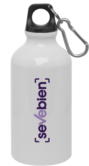 Ø 6,5 x 17,5 cm. Capacidad 400 ml. Aluminio. Permite sublimación. Tapa a rosca plástica y gancho metálico.