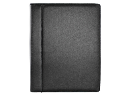 Carpeta Simil Cuero Negro. En el interior incluye Bolsillos para documentos tamaño A4, Compartimentos para Tarjetas Y Porta-Lápices.