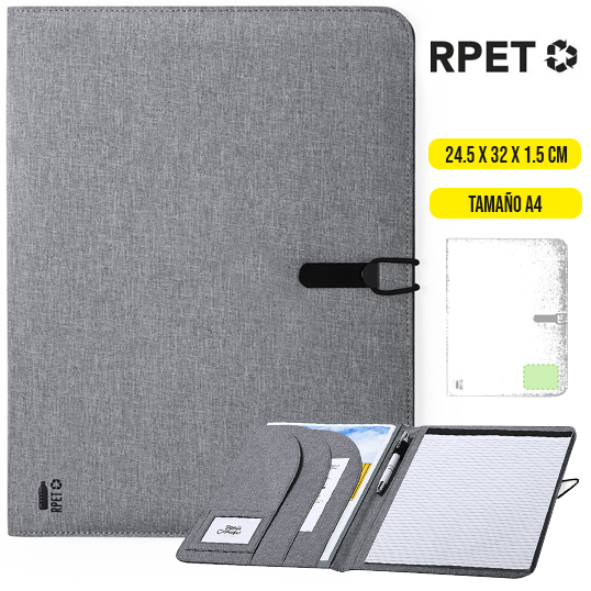 CARACTERÍSTICAS Composición: Poliéster RPET Especificaciones artículo: 32 cm / 24.5 cm / 1.5 cm | 557 gr Packaging: alto (cm): 34 Packaging: largo (cm) : 42 Packaging: ancho (cm) : 26 Peso caja (Kgr): 11 Unidades/caja: 20