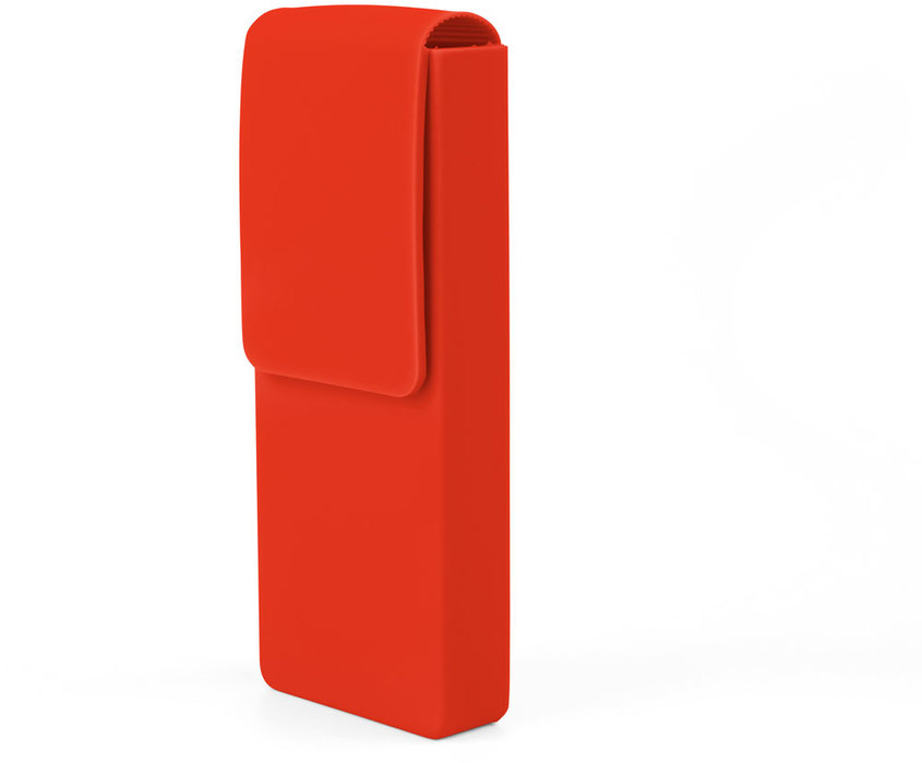 7,5 x 18,5 x 2,7 cm. Silicona. Cartuchera de silicona extra suave. Tiene una solapa imantada y es muy canchera para llevarla a todos lados. Presentación en caja de regalo.