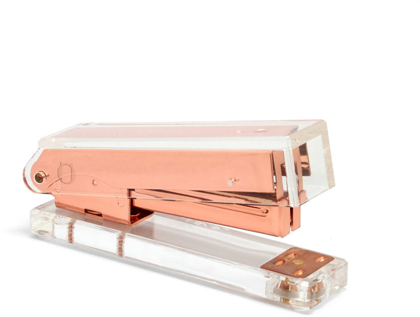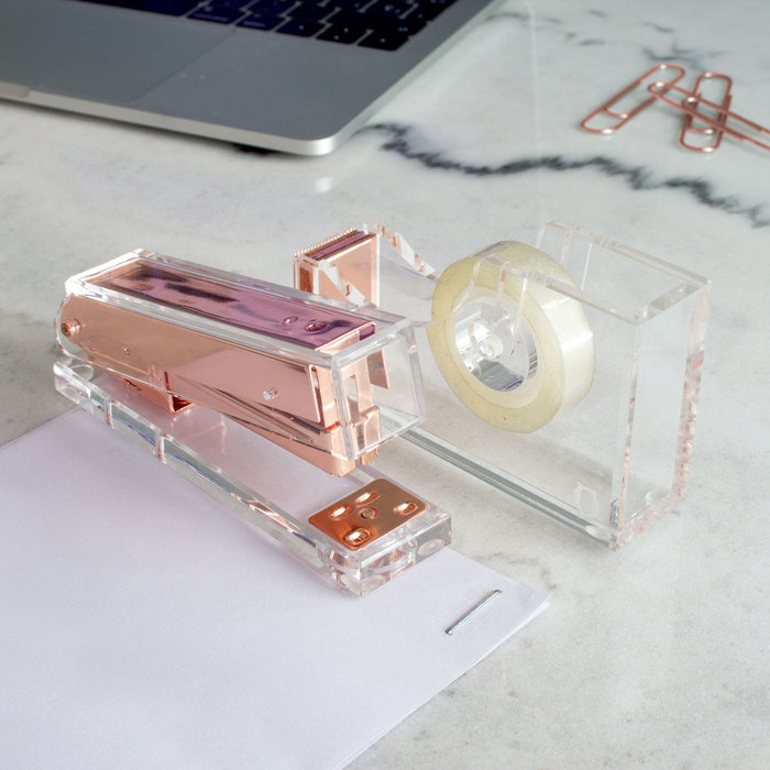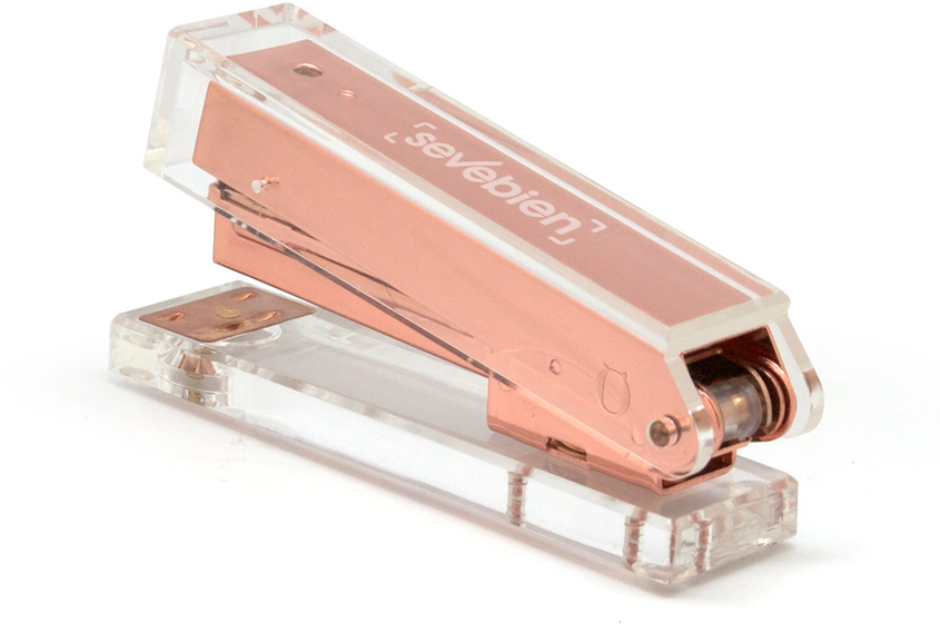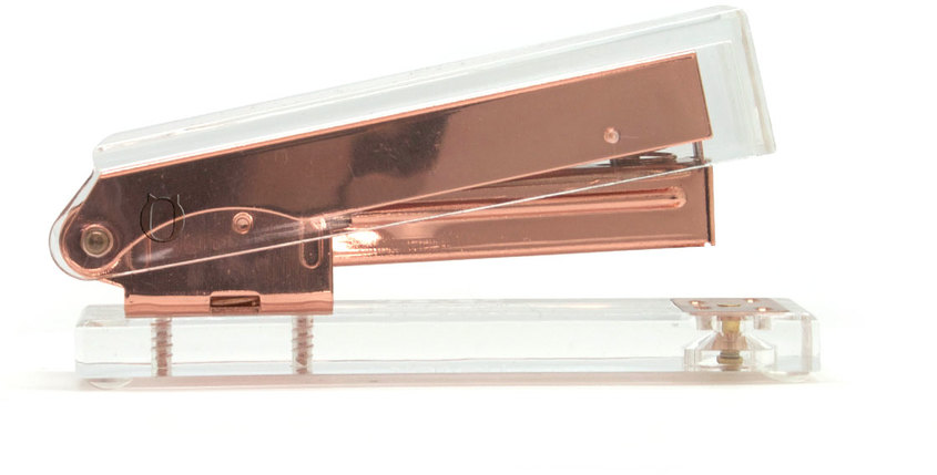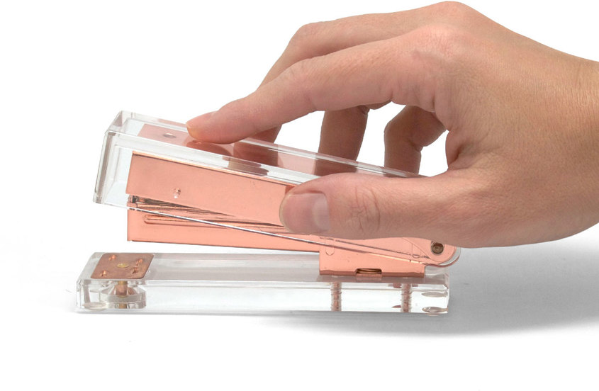 12,8 x 6 x 3,1 cm. Acrílico y metal. Engrapadora de escritorio que combina diseno y funcionalidad para el dia a dia. Para broches tamaño 21/6. Presentación en caja de regalo.
