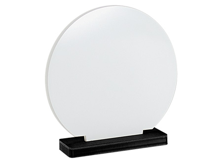 Porta-Retrato redondo para Sublimación. Base plástico negro. Porta-Foto de Acrílico frozen de 13 x 12.5 x 0.4 cm. Presentación en Bolsa plástica.