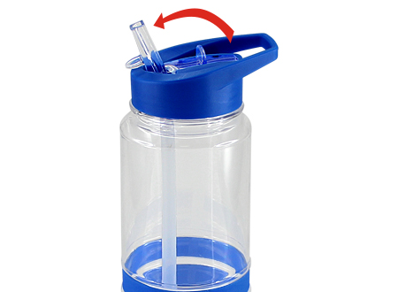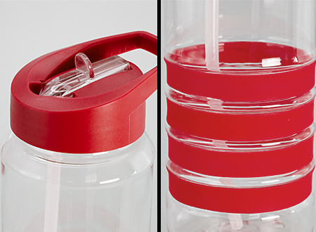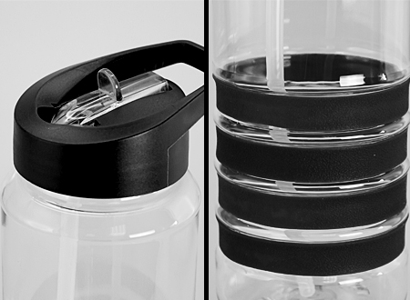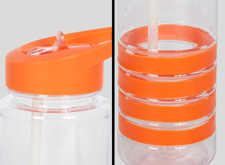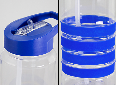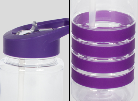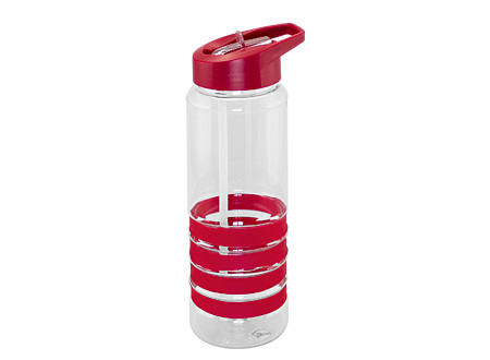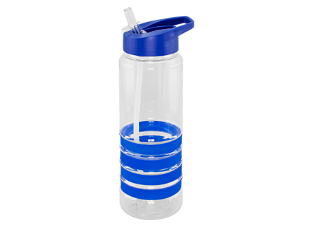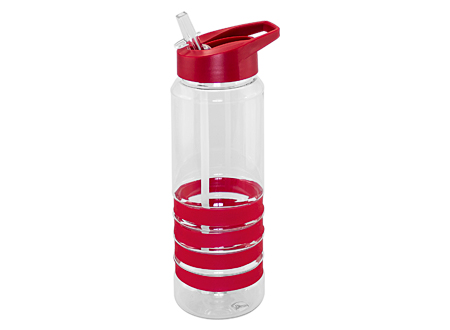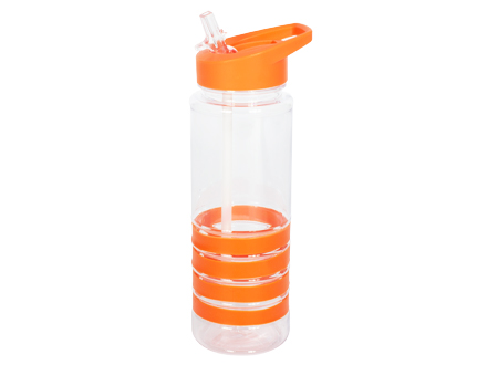 Botella deportiva modelo "Tritan", de plástico rígido traslúcido Tritan con 4 anillos de silicona de color. Tapa de plástico PP de color con bebedero retráctil. Incuye bombilla plástica en el interior. Para líquidos fríos (no térmico).
