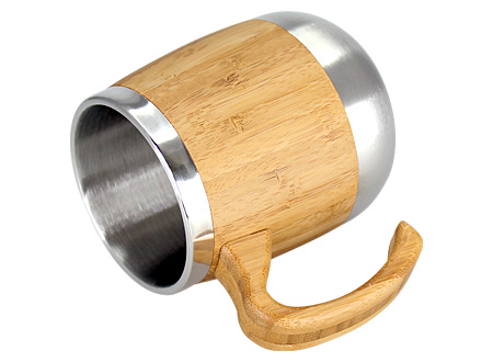 Tazón Cervecero de madera de Bamboo, interior de Acero Inoxidable. FICHA DEL PRODUCTO Tamaño: Ø 9.5 x 11.1 cm. Capacidad: 450 cc. Colores: Madera (12). Material: Bamboo, Acero Inoxidable.