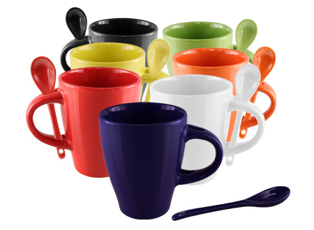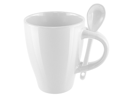 Tazón Cerámico con Cuchara. Presentación individual en caja de cartón blanco.