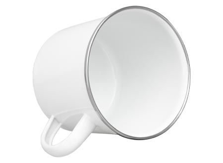 Tazón grande de acero enlozado "Enamel" de 650cc. con cobertura para Sublimación. Único con borde de Acero Inoxidable, que entrega higiene y protección al contacto con tu boca.