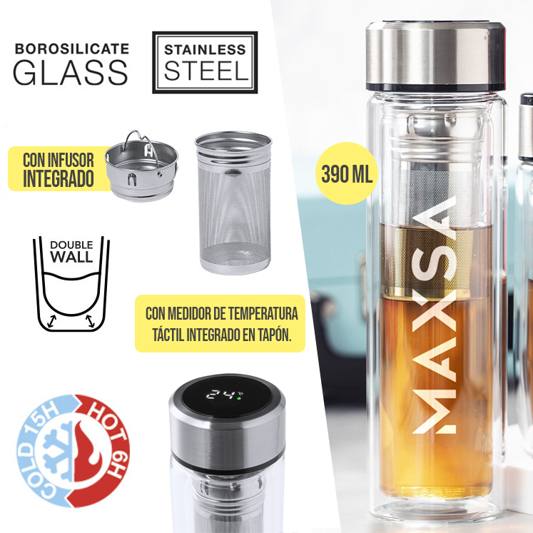 Composición: Cristal Borosilicato/ Acero Inox