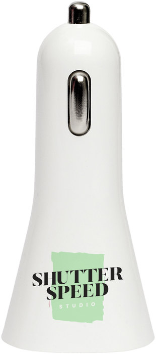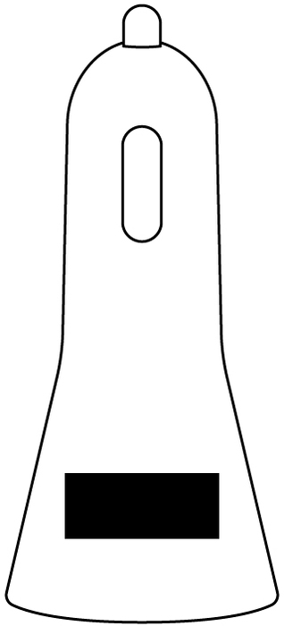8 x 3 cm. Plástico. Cargador USB para auto con dos entradas USB. Luz de encendido.