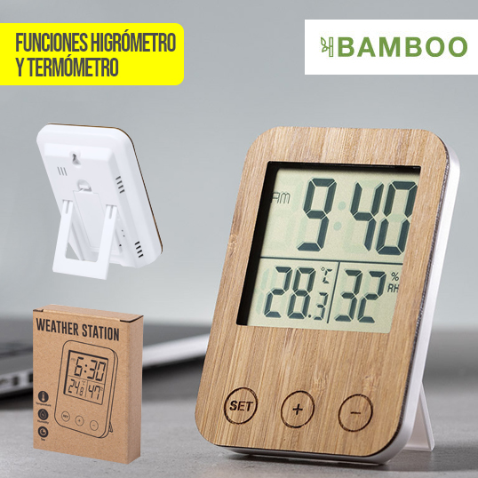 CARACTERÍSTICAS Composición: Bambú Especificaciones artículo: 12 cm / 8.5 cm / 6 cm | 95 gr Packaging: alto (cm): 29 Packaging: largo (cm) : 49 Packaging: ancho (cm) : 18 Peso caja (Kgr): 8 Unidades/caja: 50 Incluye baterías: No