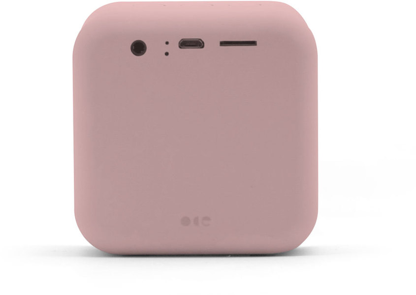8,4 x 8,4 x 5 cm. Plástico terminación soft touch. Parlante bluetooth. Practico diseno pocket con conexion Bluetooth, entrada de tarjeta TF y entrada auxiliar de 3.5 mm. Presentación en caja de regalo.