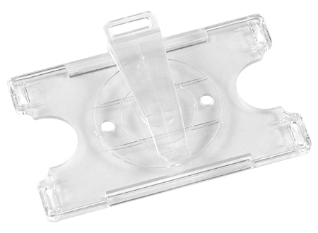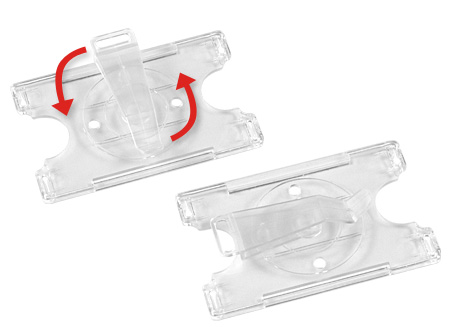 Porta-Credencial de Acrílico, para Credenciales tamaño Tarjeta de Crédito. Visibilidad por un solo lado. Con clip giratorio posterior de doble función, para presentación vertical u horizontal. FICHA DEL PRODUCTO Tamaño: 9 x 5.6 x 1 cm.