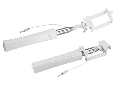 Palo extensible para Selfie "Monopod". Largo alcance de 150cm. con tu brazo extendido. Extensión total selfie-stick desplegado: 95cm. Cerrado: 30cm. Mango plástico blanco con buen área de impresión. Contiene cable de conexión y botón de disparo. No requiere aplicaciones extras para disparo.
