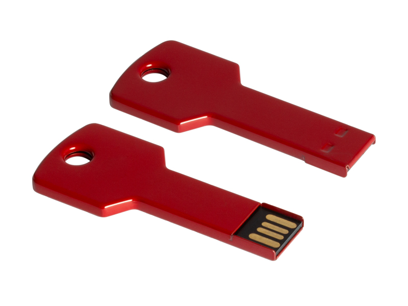 USB Pen Drive 2.0 con 16GB de capacidad, con forma de llave metálica. Ideal para llevar en tu llavero personal. Presentación en caja metálica pequeña con ventana.