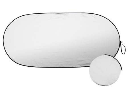 Parasol plegable de nylon plateado para el vehículo. Presentación dentro de funda redonda de nylon plateado. Gran área para impresión.