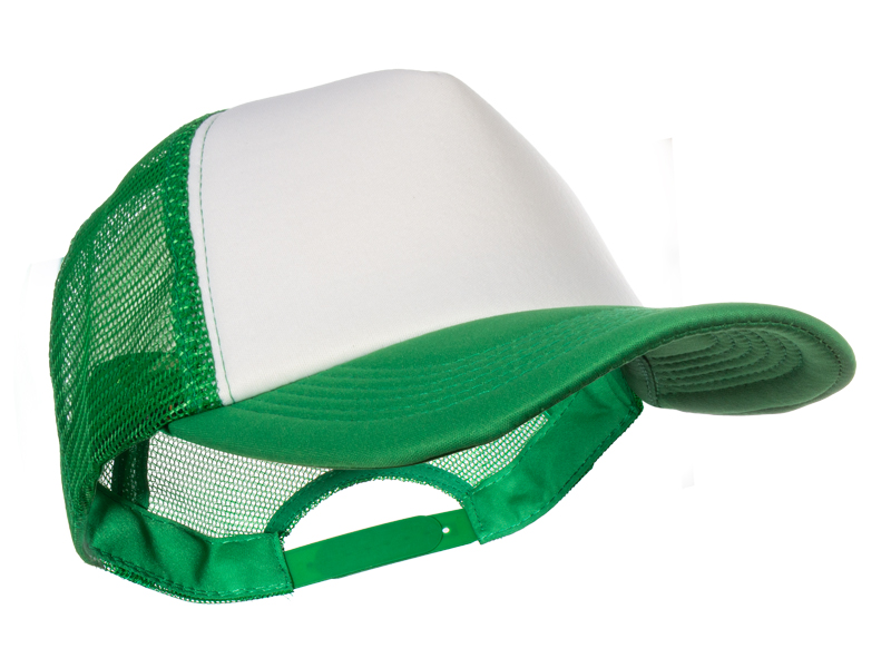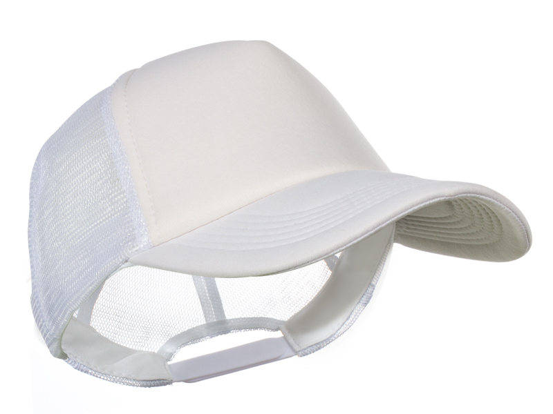 Gorro tipo Jockey para Sublimación. Panel frontal de poliéster sponge blanco con amplia área para impresión. Panel posterior de poliéster malla de color. Visera de poliéster sponge de color. Cierre posterior solapado plástico de color.
