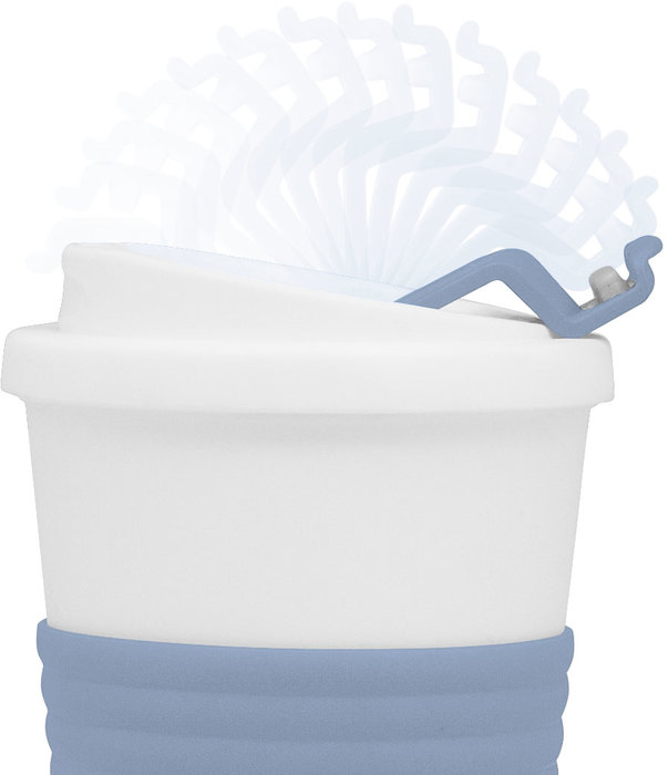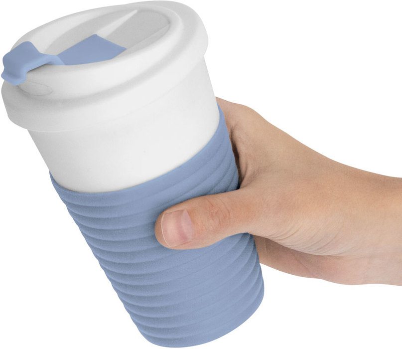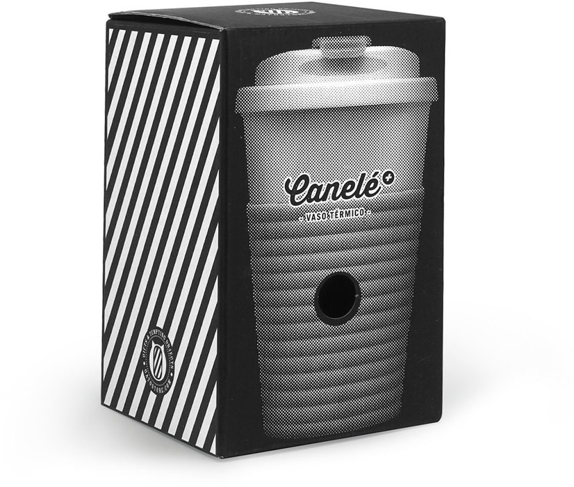 Ø 9,5 x 16 cm. Capacidad 330ml. Plástico BPA free y TPR. Vaso doble pared, sellado al vacío.  Tapa a rosca con seguro anti-vuelco para mantener las bebidas frías o calientes. Reutilizable. Apto para lavavajillas. Presentación en caja de regalo.