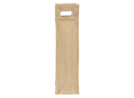 Bolsa de Yute modelo Porta-Botella, con recubrimiento laminado interior. Mayor altura, para botellas altas. FICHA DEL PRODUCTO Tamaño: 10 x 40 x 10 cm aprox. Colores: Natural (11). Material: Yute natural 15/14 laminado.