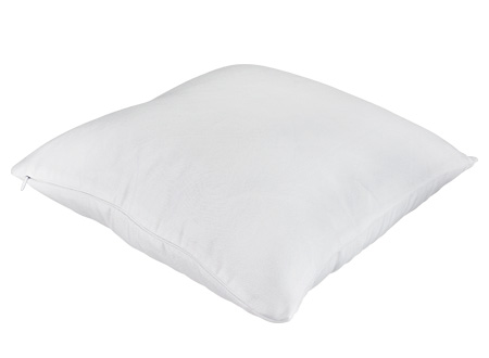 Cojín cuadrado de 38 x 38 cm. con funda desmontable (cierre) de poliéster blanco de 39 x 39 cm. para Sublimación. INCLUYE RELLENO. Presentación en bolsa de polipropileno.