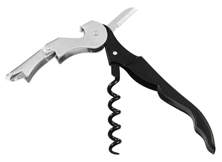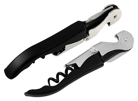 Descorchador profesional "Sommelier" de 2 tiempos de Acero Inoxidable con cubierta y tirabuzón de teflón. Presentación en caja de cartón plateada.