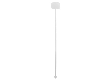 Revolvedor plástico translúcido para Tragos, cuerpo extra largo, con cabezal rectangular y punta bolita. FICHA DEL PRODUCTO Tamaño: Largo Total 21.6 cm / Cabezal 2.5 x 1.8 cm. Colores: Traslúcido (01).